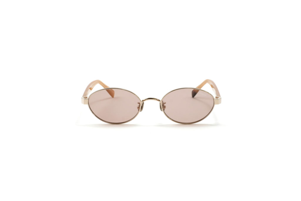 テンプルには程よいボリュームのアセテートを採用し、メタルの緊張感に対して柔らかさと奥行きを加え、モードでありながら女性的な印象を引き出す。 リムはエッジを立てすぎず丸みを持たせることで、日常にも取り入れやすい軽やかな雰囲気 に仕上げ、左テンプルエンドには、BLANCのシグネチャーディテールである切り替えを施している。