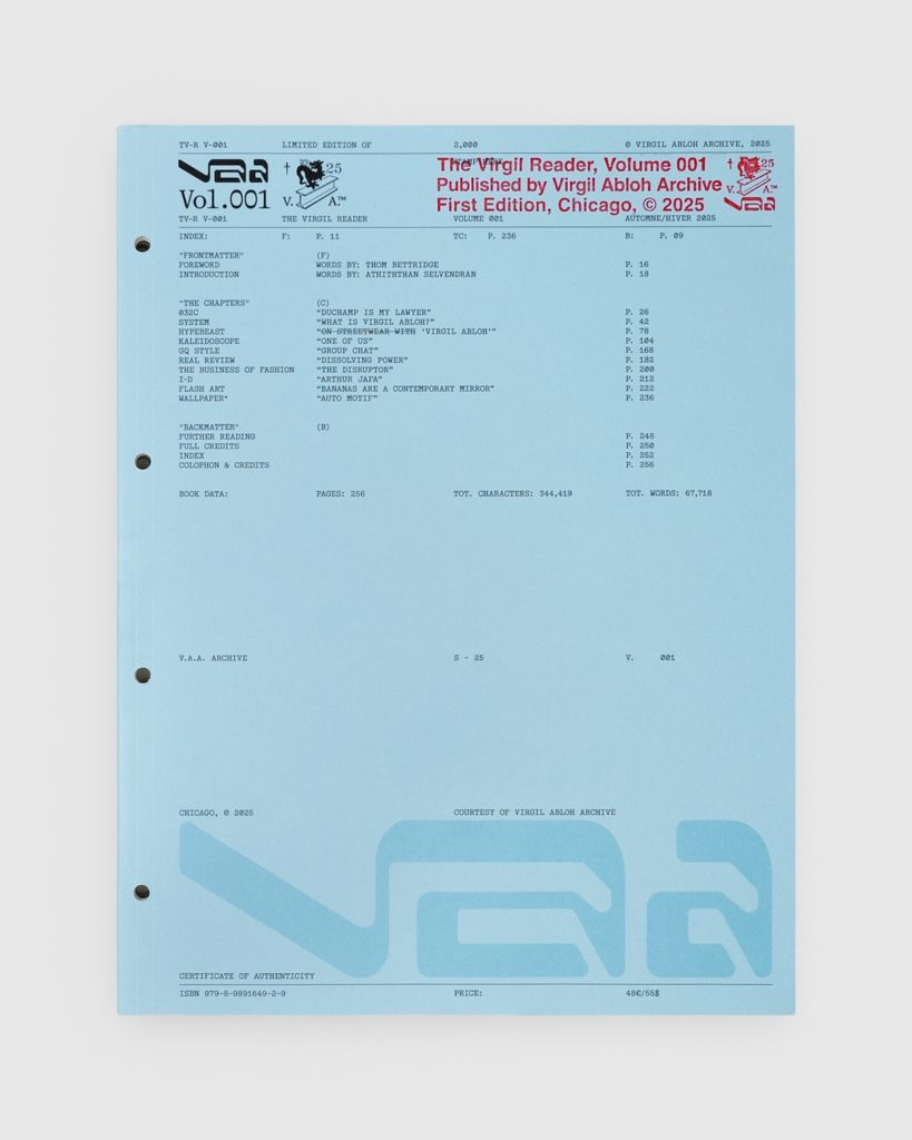 初日となる3月28日(土)は、「The Virgil Reader, Volume 001」をはじめ、「V.A.」でしか手に入れることのできない「VIRGIL ABLOH ARCHIVE™️」のTシャツや「FRAGMENT」と「VIRGIL ABLOH ARCHIVE™️」のコラボレーションTシャツ、ジップフーディがラインアップ。